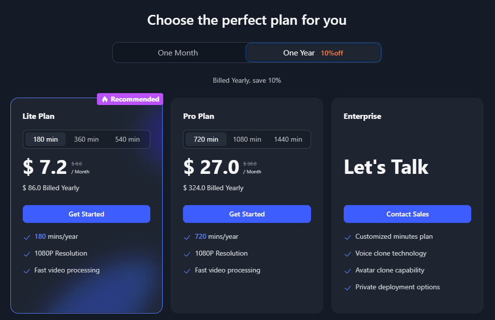 - 视频翻译:基于 AI 的语音克隆与口型同步技术,将原视频翻译为多语言版本,支持 70+ 语言和 180+ 口音。