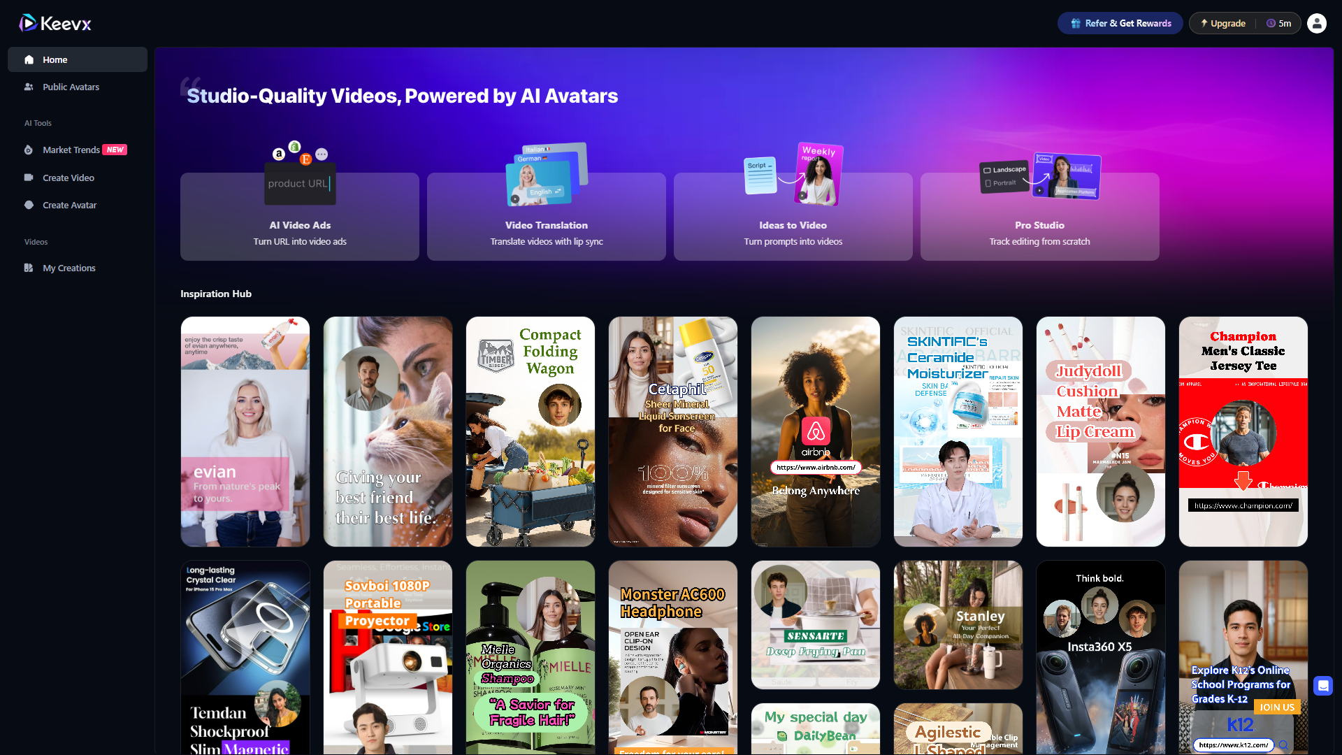 借助 URL 解析、AI 脚本生成与爆款视频复刻,Keevx 可以在数分钟内完成视频制作,满足高频率、大规模的内容需求。